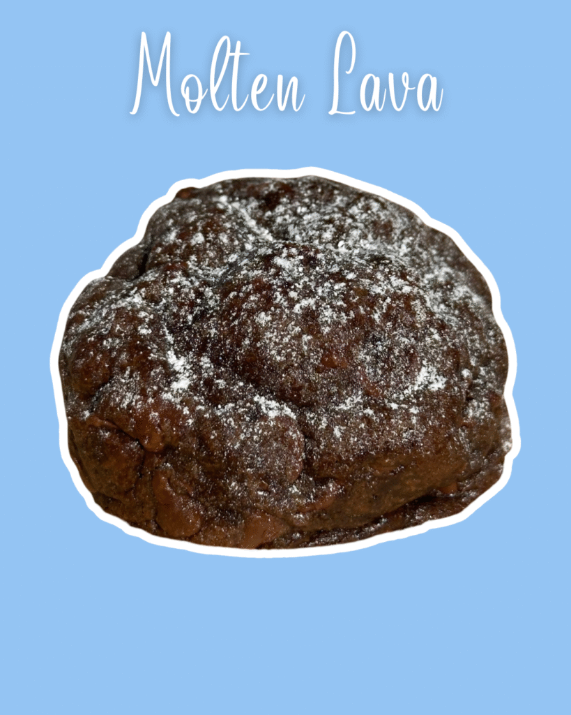 Deep cocoa dough layred with rich chocolate chunks and finished with a smooth velvety ganache center.